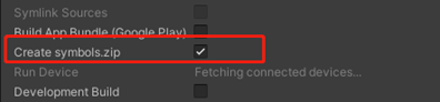 apk/aabパッケージビルド時に「Create symbols.zip」にチェックを入れると、出力ディレクトリにapk/aabと同名のシンボルzipファイルが生成されます。